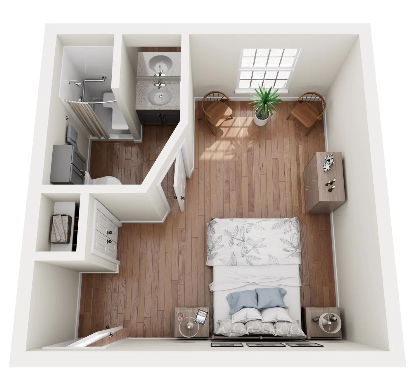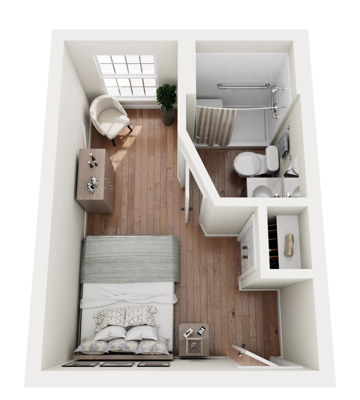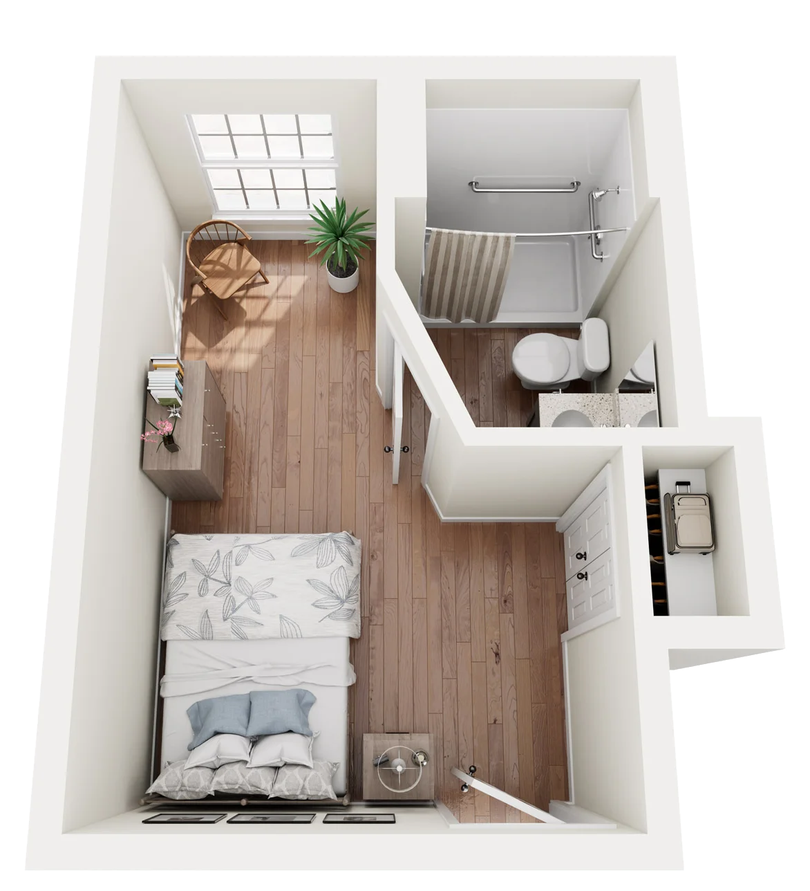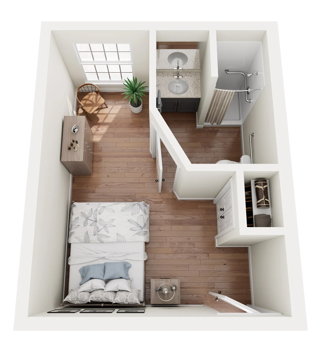 Our various studio apartments are designed for your loved one’s safety and comfort. With a full-service bathroom and closet space, your loved ones’ needs are in good hands with The Indigo at Elmhurst.